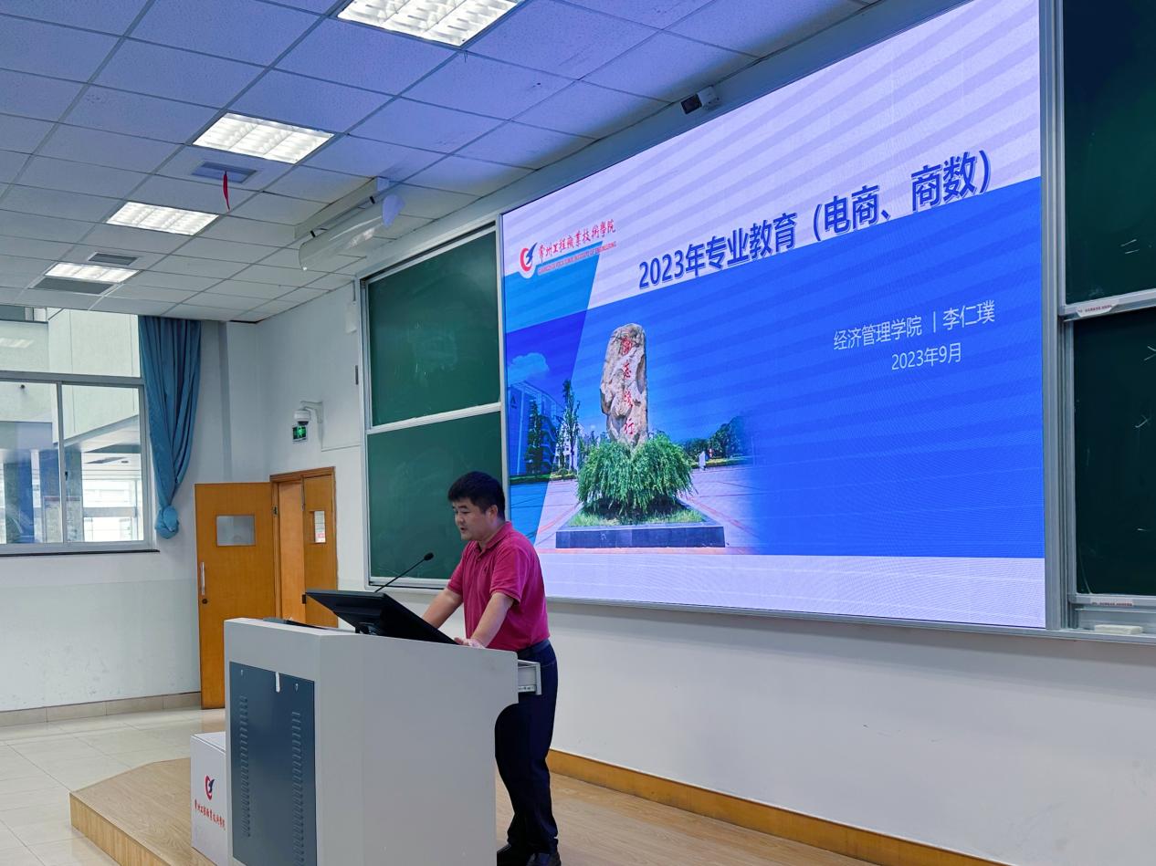 在电子商务、商务数据分析与应用专业教育中,经管学院院长李仁璞介绍了两个“新”专业的产业现状与发展趋势,现场邀请了江苏省产业教授、常州市龙道电子商务有限公司联合创始人兼CEO陈开平先生主讲,陈开平以疫情后中国特别是常州电商产业的最新发展,以企业真实业务为例,为同学们上了一堂生动的讲座,课堂上与同学互动频频,让同学们耳目一新。