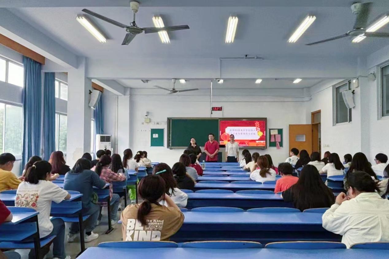 经管学院华亚副书记在药品经营与管理专业教育活动中结合学生工作对新生提出了期许,校企合作单位全亿健康常州分部人事经理虞丹参加了此次活动并分析了专业的就业前景。专业带头人许紫霞系统介绍了专业特色、培养目标、知识理论体系、校企合作单位等事项。