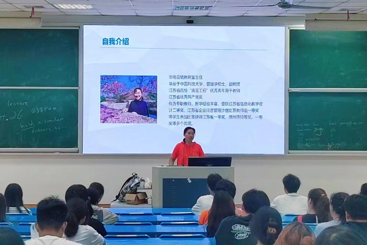 市场营销教研室主任金志芳分别从专业需求、培养目标、课程体系、实训条件四个方面介绍了专业人才培养方案和专业建设与发展情况,常州中天日新汽车有限公司周伟良副总经理以企业管理人员和学长的角度从学什么、具备什么、圈重点三个方面为学生在校学习和实践提供了指导建议。