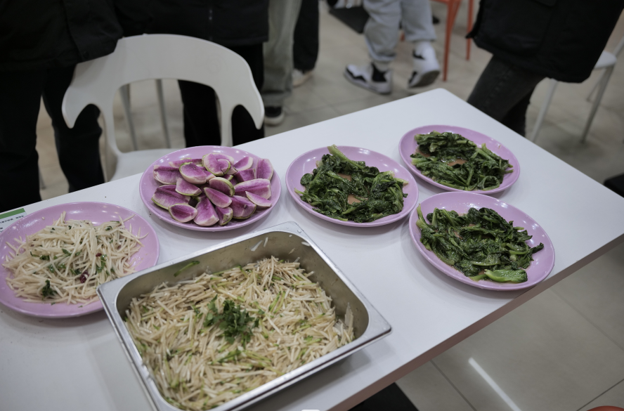 带着在润心园采摘的新鲜蔬菜,来到共享厨房,大家分工协作,洗菜、切菜、淋油、翻炒、调芡、摆盘,在锅台边忙得热火朝天,感知烹饪的魅力。美味的菜肴一道道出炉,蚝油生菜,清炒青菜等等,一阵阵的香味弥漫整个大厅。