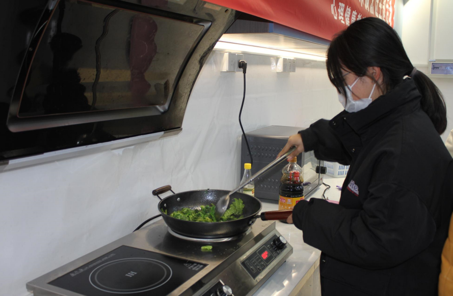 带着在润心园采摘的新鲜蔬菜,来到共享厨房,大家分工协作,洗菜、切菜、淋油、翻炒、调芡、摆盘,在锅台边忙得热火朝天,感知烹饪的魅力。美味的菜肴一道道出炉,蚝油生菜,清炒青菜等等,一阵阵的香味弥漫整个大厅。