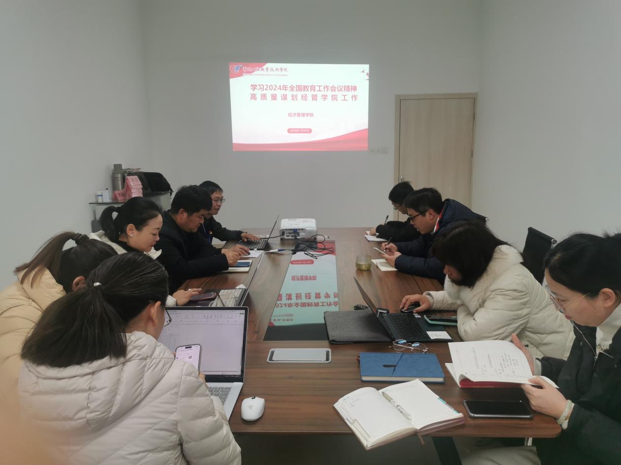 徐标传达学习了中央教育工作领导小组秘书组组长、教育部党组书记、部长怀进鹏在全国教育工作会议上的重要讲话精神,深刻领悟“两个确立”的决定性意义,深刻认识教育强国建设的主攻方向和战略布局,坚持教育服务高质量发展这个硬道理,推动教育强国建设重点任务落地见效。徐标强调,要紧紧围绕学校第五次党代会确定的奋斗目标任务,以挺膺担当、奋发有为的姿态,打造学院特色和党建品牌,奋力书写经管学院高质量跨越式发展新篇章。