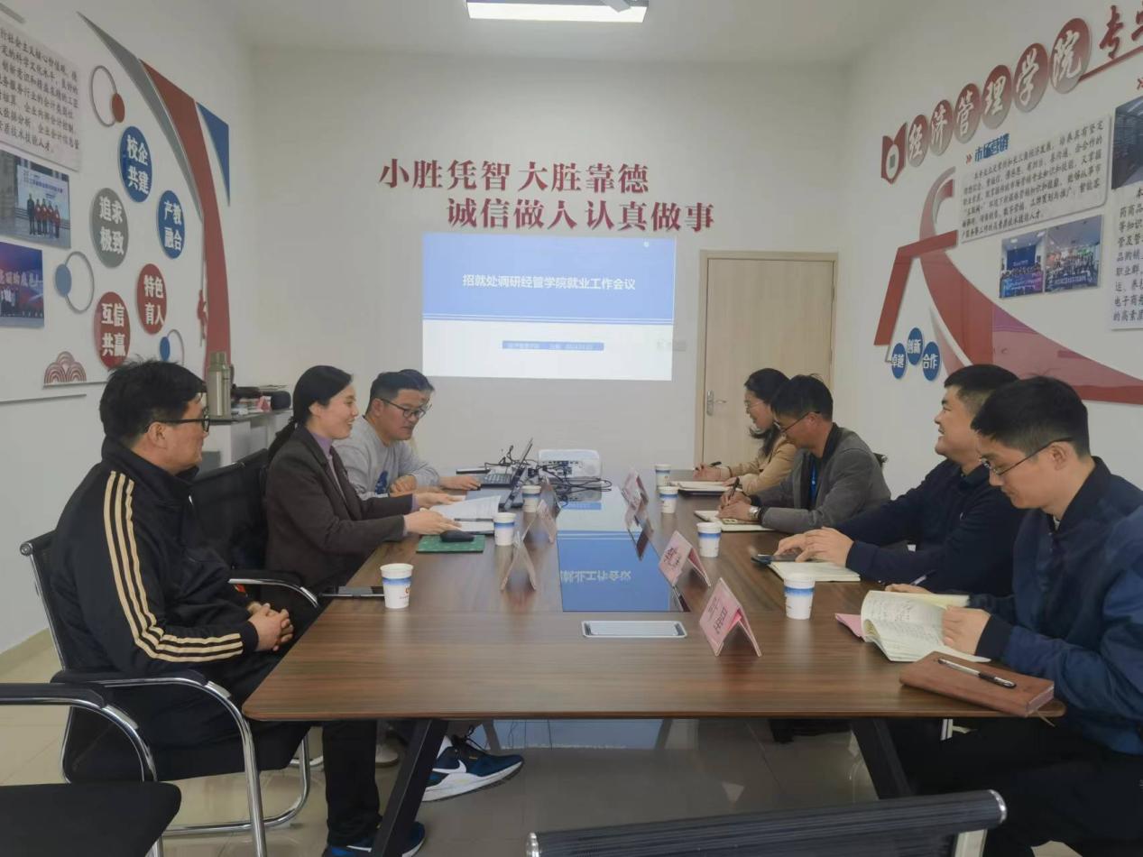 为落实党中央、国务院对高校毕业生就业工作的决策部署,进一步推动毕业生高质量充分就业,招生就业处于3月22日到经管学院调研就业工作开展情况。招就处副处长杨晶晶、校就业指导中心科长郭长龙、就业科吴孟宝莅临指导,学院党总支书记徐标、院长李仁璞、副书记华亚等参与接待。