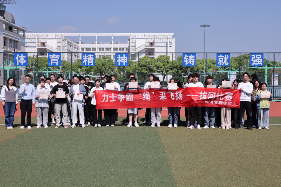 “力士争霸,‘绳’采飞扬”拔河比赛。经管学院2022级、2023级各班级组成的参赛队伍齐聚田径场,展开了一场别开生面的拔河比赛。随着裁判的一声哨响,比赛正式拉开帷幕。双方队员紧握绳索,蓄势待发,各班级都展现出了较高的竞技水平和默契的团队协作,展现出青春的活力与拼搏的精神。
