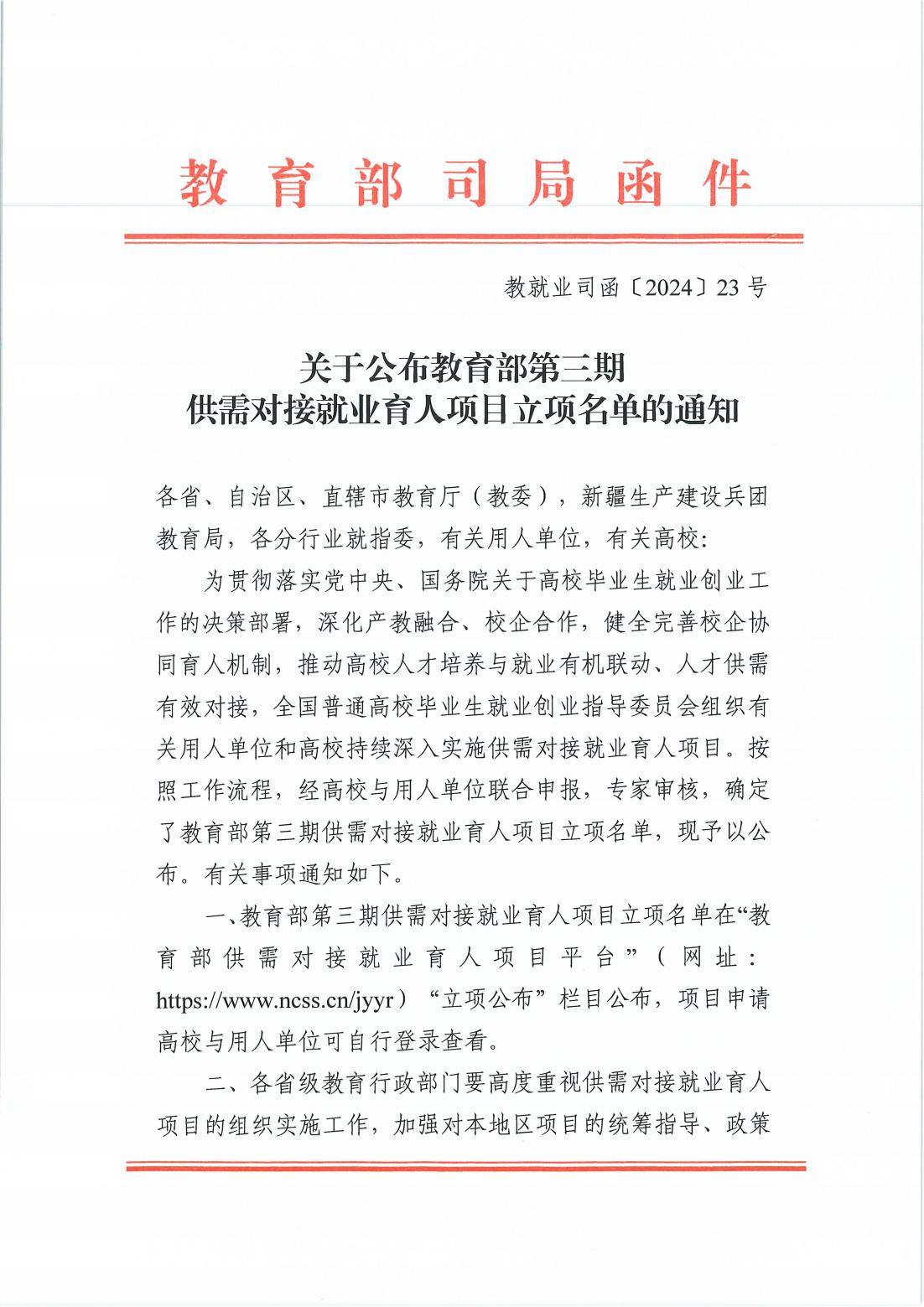 经管学院又获批4项教育部第三期供需对接就业育人项目