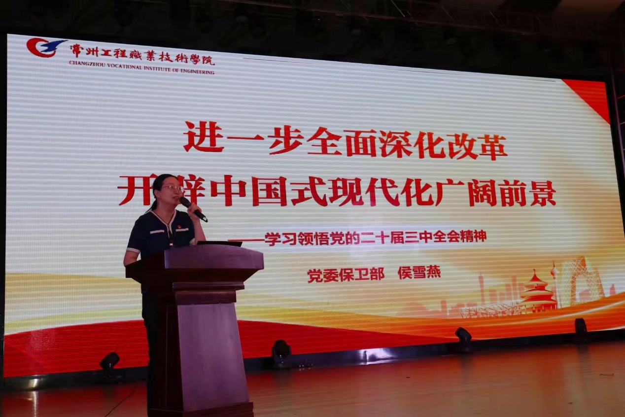会议第一阶段,侯雪燕作《进一步全面深化改革 开辟中国式现代化广阔前景》主题宣讲。她聚焦习近平总书记在党的二十届三中全会上的重要讲话精神,从新时代全面深化改革的重大成就、进一步全面深化改革的总目标和原则等方面进行了系统讲述和深入阐释。