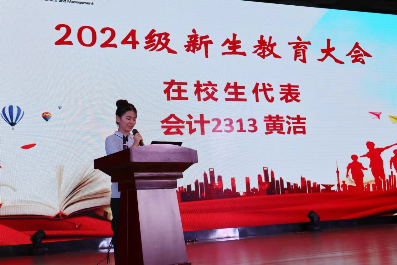 会议第二阶段,教师代表邹娜娜寄语新生,号召大家做具有创新思维和实践能力的大学生。她表示,将以饱满的热情、严谨的治学态度和高度的责任感,为同学们传授知识、解答疑惑、指导人生,努力营造一个良好的教学氛围,让大家在轻松愉快的环境中学习和成长。在校生代表会计2313黄洁发言,她与学弟学妹们分享了在校学习与生活的经历,并鼓励大家珍惜大学时光,勇于尝试新事物,积极参与各种活动,让自己的大学生活丰富多彩。新生代表营销2411偰陶心怡发言,她分享了入学以来的思考与同学们共勉:青年大学生要用积极的姿态迎接挑战,努力在学习与实践中不断成长,让梦想在奋斗中绽放光芒。