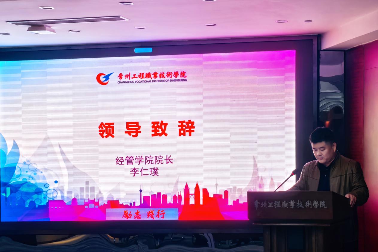 首先经管学院院长李仁璞发表致辞,他强调AI技术迅猛发展,正逐步改变传统教育模式,为职业教育注入了新活力。我们要把握住机遇,将AI技术融入教学过程,实现教学“数智化”创新,提升学院整体教学质量。