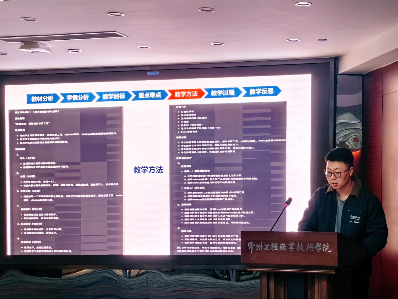 接着印大伟、杨庆宜、周航、李枫、周科五位教师围绕AI技术在教学中的应用,结合电子商务、大数据与会计、酒店管理与数字化运营以及市场营销等专业课程内容进行了精彩的教学示范展示。
