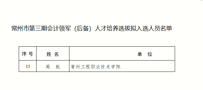 近日,常州市第三期会计领军(后备)人才培养选拔工作经申报、审核、背景资料评分、笔试和面试等环节选拔录取56人,我校91成人网周航老师成功入选。