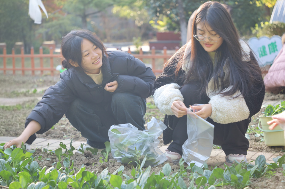 辛勤劳作催生坚毅品格,劳动果实滋养健康心灵。秋学期初师生们辛勤的耕耘,转眼到了收获的季节,11月28日下午,师生们满怀期待与激动的心情再次齐聚润心园,穿梭在一垄垄菜畦间,小心翼翼地采摘着成熟的蔬果。拔萝卜、摘菠菜、采生菜每一个动作都流露出丰收的喜悦,在采摘的过程中,同学们的笑容和手中的果实交相辉映形成了一幅幅美丽的画面。在近两个月的耕种劳动中,师生充分发扬团队协作精神,在耕耘劳作中共享收获、共同成长,进一步深化了劳动教育和心理育人融合发展,为学生搭建了促进身心健康成长的平台,更好地满足了广大学生的心理健康需求。