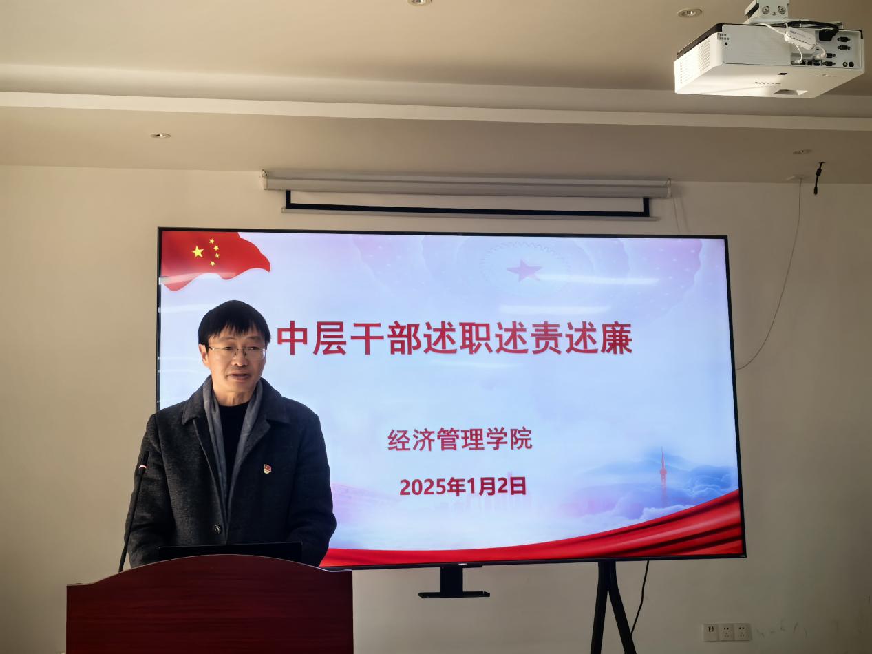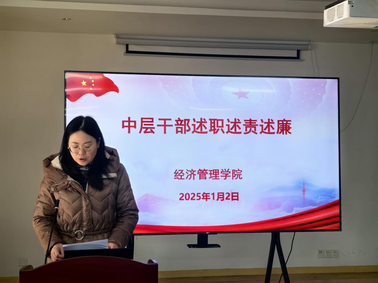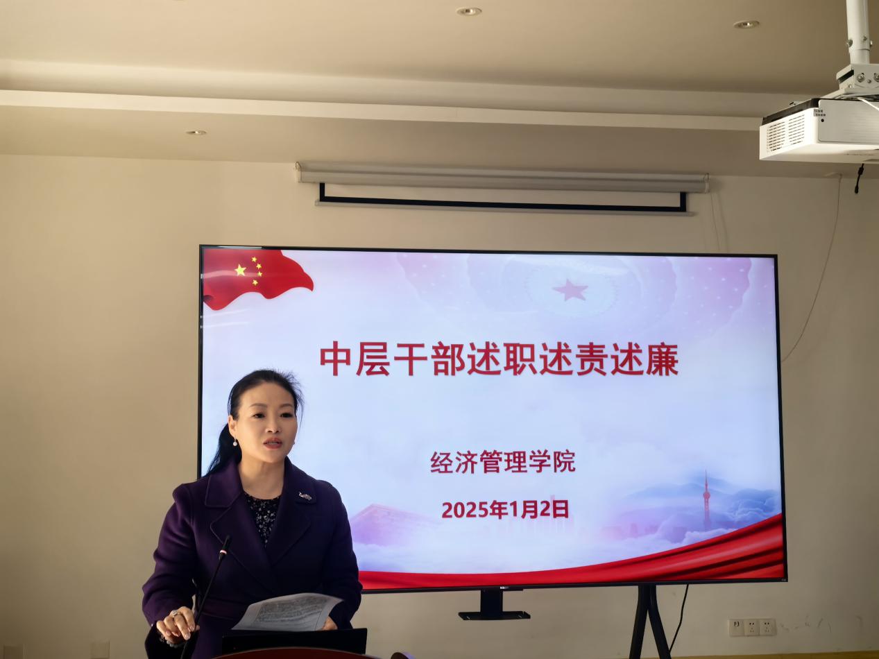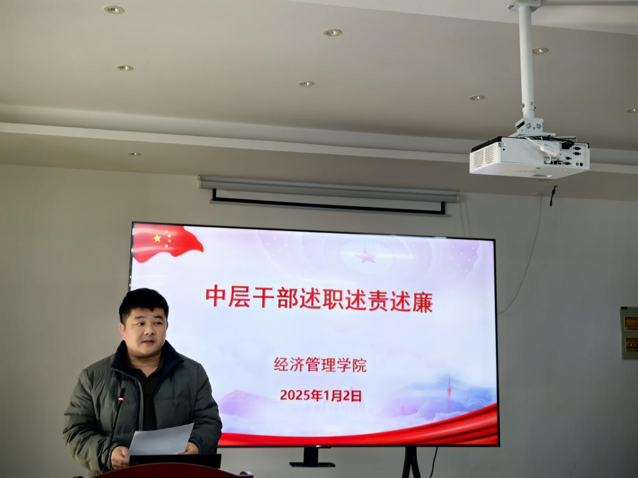随后,经管学院四位党政班子成员依次进行述职述责述廉,详细汇报了过去一年的工作情况、工作成效以及廉洁自律方面的表现。在述职环节结束后进行了中层干部的民主测评,这一环节旨在更客观、公正地评价中层干部的工作表现,促进学院管理水平的提升。