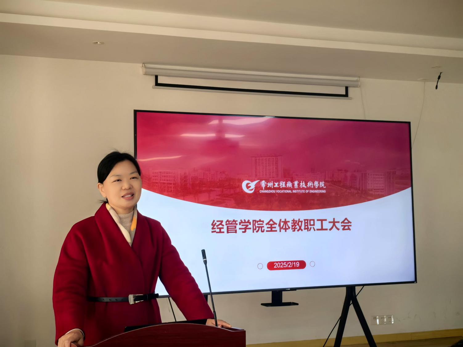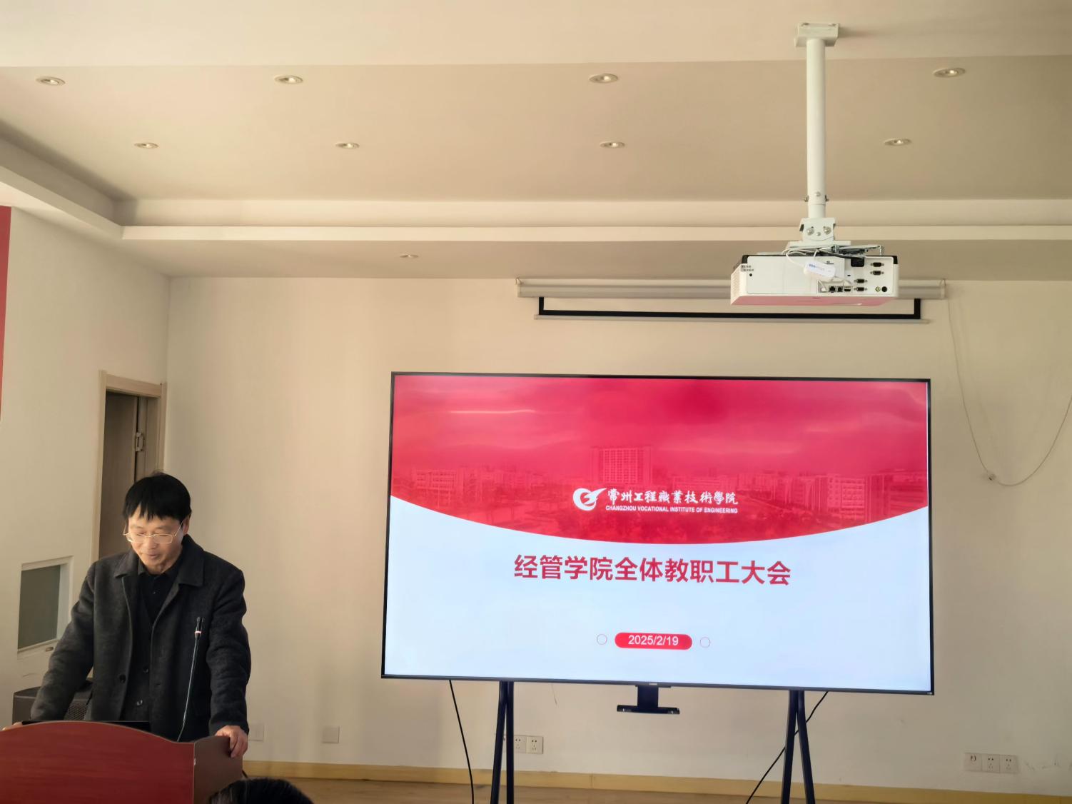 2025年2月19日下午,91成人网在新学期伊始召开了全体教职工大会旨在总结2024年工作、明确2025年学院工作方向,细化重点工作任务安排,为学院的高质量发展凝心聚力。校党委委员、副校长张雪华、学院全体教职工参加会议大会由党总支书记徐标主持。