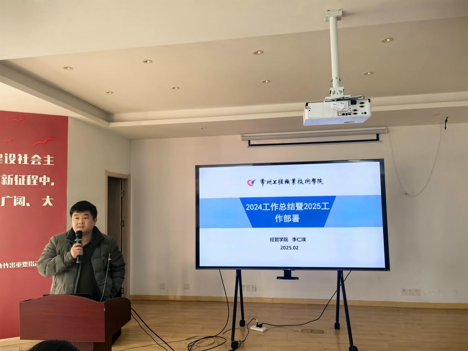首先,院长李仁璞作2024年工作总结汇报及2025年重点工作部署。李仁璞全面总结了2024年的工作,特别是在技能大赛获突破、产教融合树典型、实训基地建设等方面的特色亮点,结合“十四五”规划,对学院存在的问题和不足进行了客观分析,并对2025年重点工作进行了详细部署。从数智化改革到师资队伍团队建设,从学生培养到专业发展,明确了工作重点和实施路径,让大家更加深刻地认识到肩负的责任与使命。