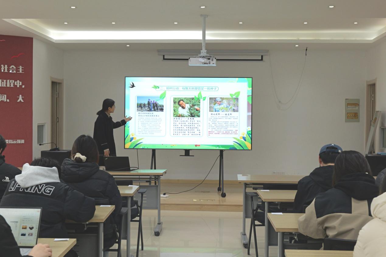 解码奥秘,共筑绿色未来。3月12 日下午,植树节知识科普活动在合一楼C301如期举行。会计2411班周子怡同学担任主题演讲人,她向同学们深入介绍了植树节的由来、意义,以及树木在生态系统中的重要作用等知识。通过一个个生动的案例和详实的数据,让同学们深刻认识到植树造林对环境保护的重要性,大家纷纷表示要将环保理念融入日常生活,共同守护地球家园。