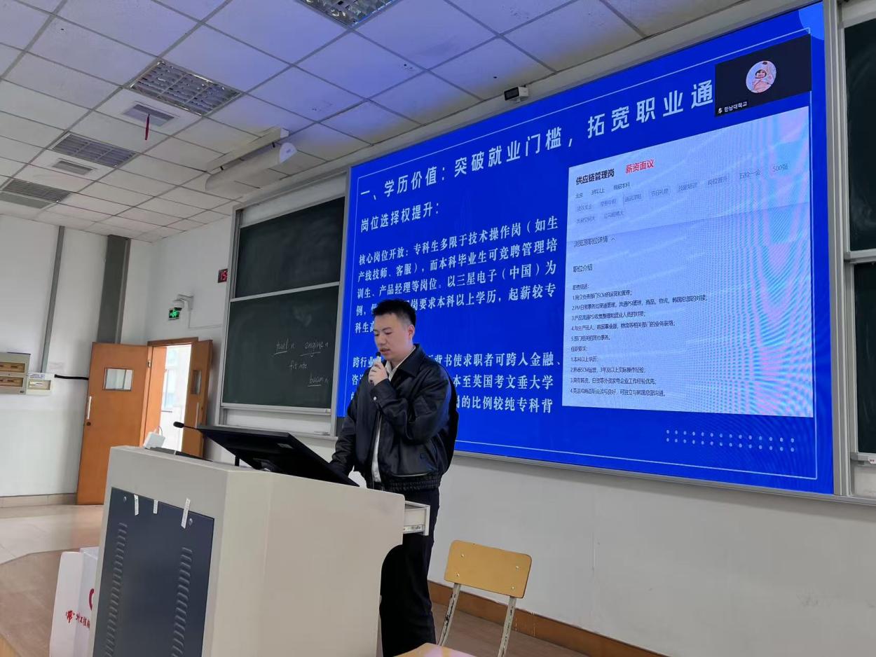 韩南大学代表李老师以“韩南大学与中国经济通商专业”为主题,从学校历史、学科建设、校园文化等维度对韩南大学进行了介绍。连老师重点解析了“中国经济通商专业专升本(3+1)”项目细节,学生围绕“学分转换”“韩语学习难度”“就业薪资水平”等问题踊跃提问。