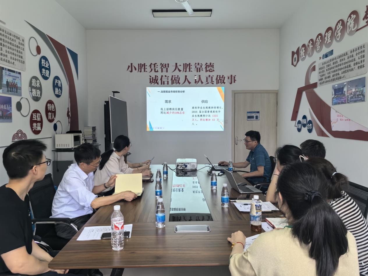 为全面贯彻党中央、国务院关于“稳就业”“保就业”的决策部署,有效落实2025届全国高校毕业生就业重点工作推进视频会议要求,切实推进学院2025届毕业生就业工作,5月16日,经管学院召开2025届毕业生就业工作促进会。学院领导、毕业班班主任、就业辅导员和校招就处吴孟宝参加会议。