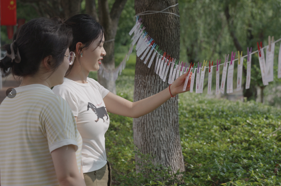 活动现场,合一楼下悬挂起色彩斑斓的卡片,每一张都写满了爱自己的独特方式。从 “吃一顿想念已久的美食” 感受味蕾的满足,到 “找一片喜欢的树叶做书签” 留存自然的诗意;从 “摘抄一段有力量的文字” 汲取精神养分,到 “到大自然中散步” 放松身心……这些简单却充满温暖的方式,瞬间吸引了往来学生的目光。活动期间,合一楼下人潮涌动,同学们纷纷驻足,精心挑选着触动自己内心的卡片,现场洋溢着积极向上的氛围。