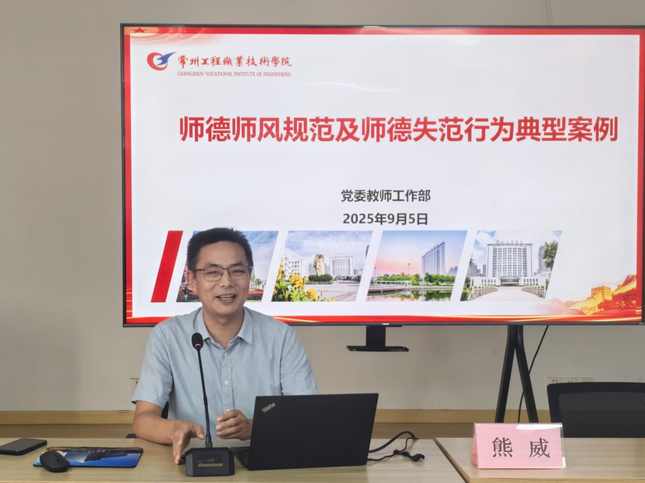 熊威作师德师风建设警示教育专题报告,报告以习近平总书记关于师德师风建设的重要论述为根本遵循,系统梳理了国家及教育部颁布的教师职业道德法律法规、准则与处理办法,并通过鲜活案例分类剖析高校教师在政治纪律、教育教学、科研学术、管理服务、廉洁从教、师生关系等方面的失范行为及其严重后果,通过身边典型案例深入剖析师德红线,引导教师筑牢思想防线,恪守职业操守。强调师德师风是评价教师队伍素质的第一标准,必须坚持以“零容忍”态度惩防并举、长效治理,引导全体教师自觉践行“四有”好老师要求和教育家精神,以德立身、以德立学、以德施教,全面落实立德树人根本任务。