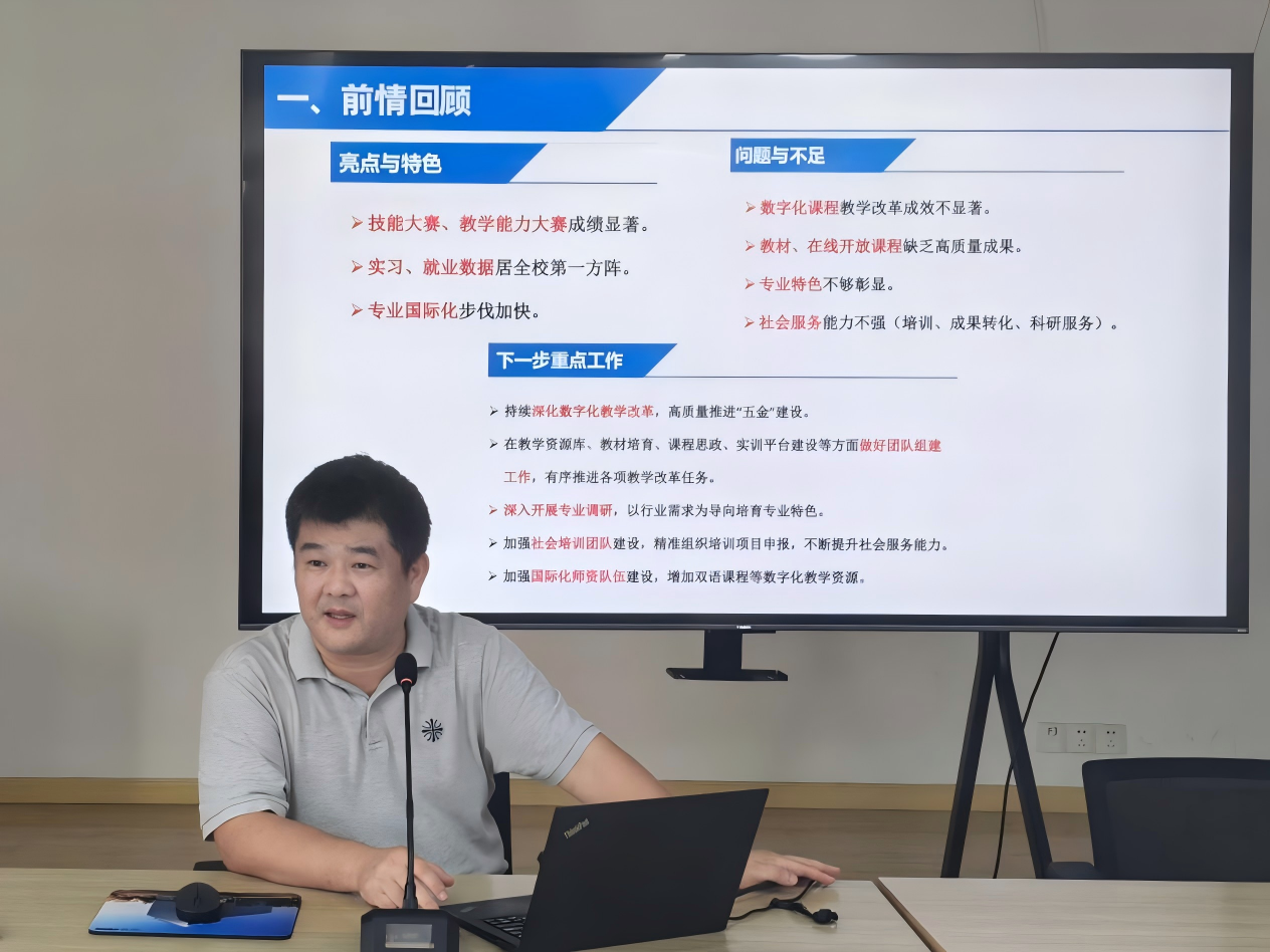 院长李仁璞就新学期学院工作进行全面部署。他回顾暑期期间学院在技能大赛、实习就业、国际化建设等方面取得的进展,并围绕“AI赋能专业特色培育”、“大赛团队组建”、“产教融合实践中心建设”、“社会培训专班推进”等重点工作提出具体实施方案,强调要“有方向、有干劲、有收获”,拒绝“躺平、内卷、迷茫”。
