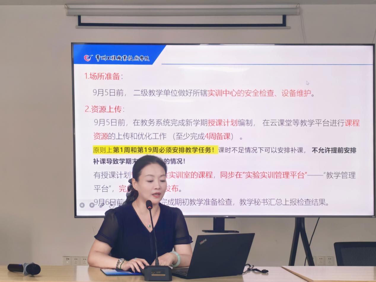 副院长罗元就期初教学工作作出详细安排,包括教学场所准备、课程资源上传、教学巡查、补考组织、实习管理等,强调要严格落实教学要求,确保新学期教学工作平稳高效开展。