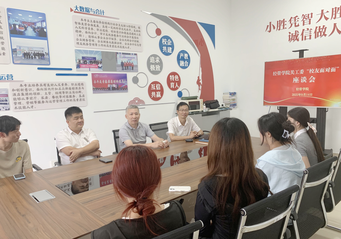 为切实发挥优秀校友的榜样示范作用,助力学生明确职业规划方向,9月14日,经管学院在合一楼C304会议室举办“校友面对面”座谈会。南通校友会会长、南通濠河景区希尔顿花园酒店董事长袁建安,经管学院党总支书记徐标、院长李仁璞及酒店管理与数字化运营专业2024级、2025级学生代表共同参会。座谈会由徐标主持。