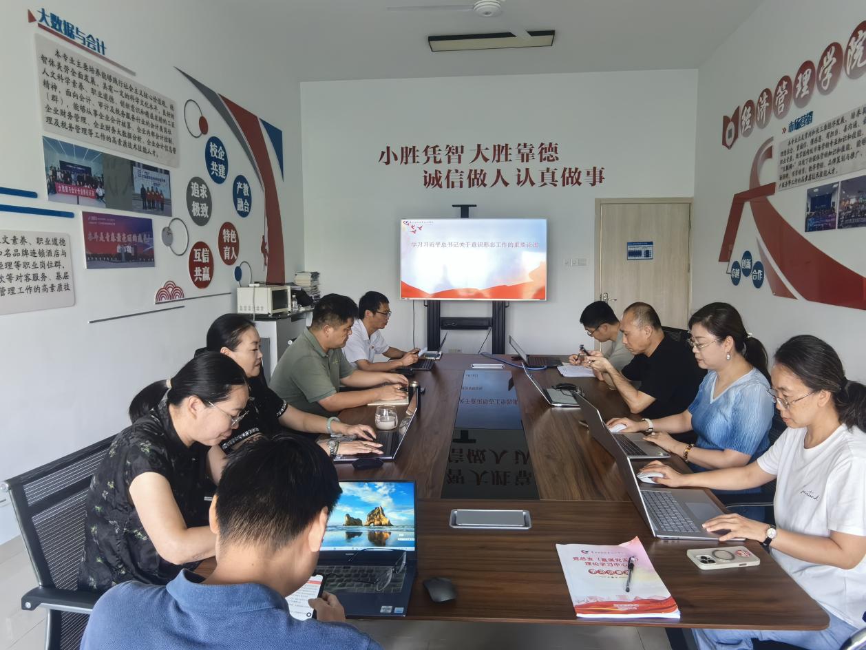 为深入学习贯彻习近平总书记关于意识形态工作的重要论述,持续筑牢意识形态安全防线,9月19日,经管学院党总支理论学习中心组开展本年度第九次集体学习。党总支委员、班子成员、两办主任、教研室主任、支部书记参加了本次学习,学习会由党总支书记徐标主持。