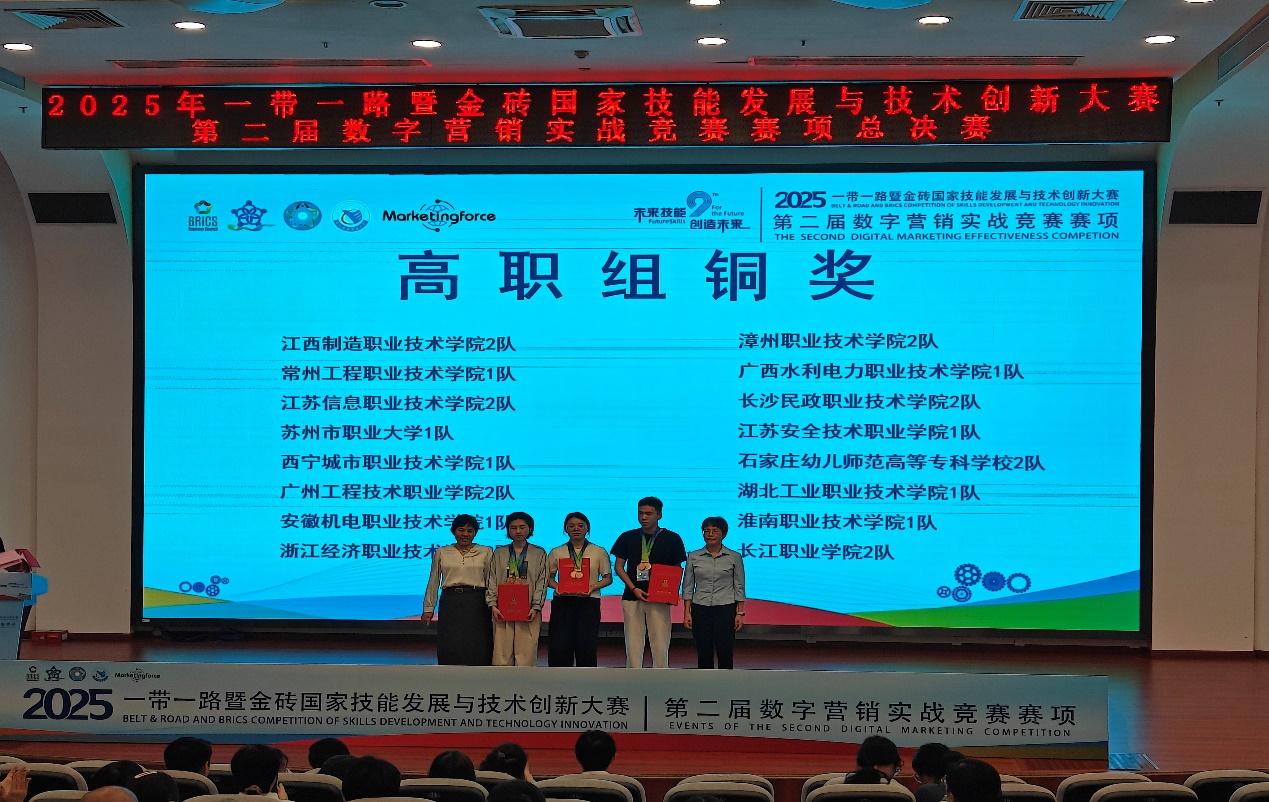 11月9日,2025“一带一路”暨金砖国家技能发展与技术创新大赛第二届数字营销实战竞赛全国总决赛在东莞职业技术学院落幕。常州工程职业技术学院经管学院学生陆寒香、金悦代表队荣获全国铜奖(指导教师:王磊、李仁璞)。