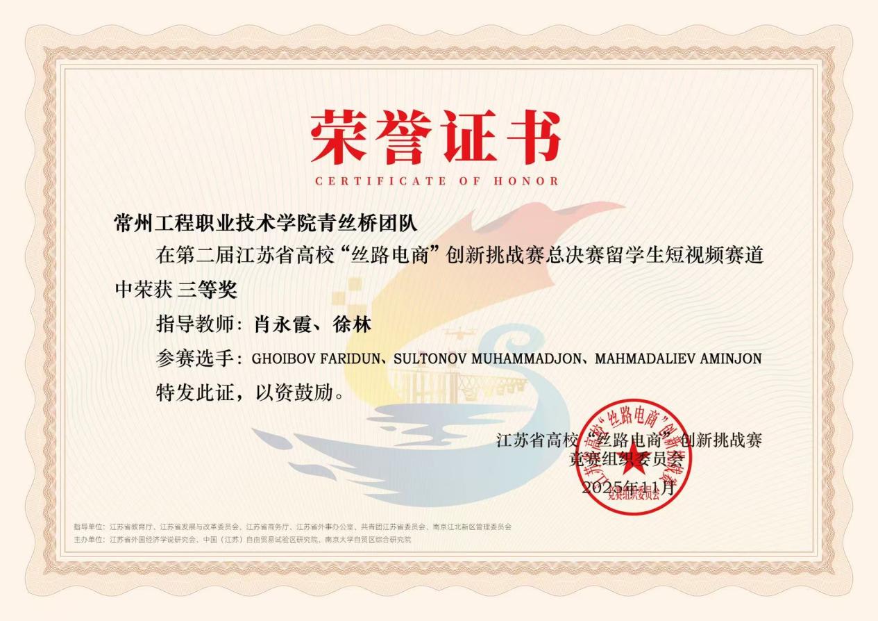 我校获江苏省高校“丝路电商”创新挑战赛留学生短视频赛道三等奖