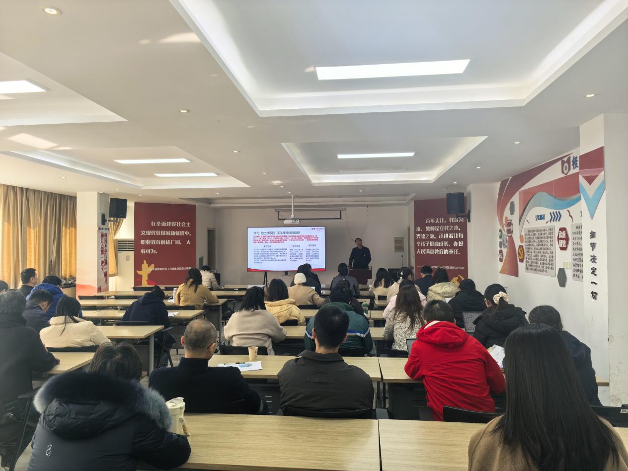 会上,徐标以《守纪律明底线 强作风促实干》为题,围绕“为何学、学什么、怎么学、如何干”四个维度展开系统讲解。他强调,深入学习《规定》是贯彻落实国家法治建设相关部署的必然要求,更是维护学校学院集体声誉、保障教职工职业发展与家庭幸福的重要基石,全体教职工必须从思想根源上深刻认识其核心意义。在解读环节,系统梳理了《规定》的框架体系与核心条款,明确了适用范围、处分种类及相应后果,重点针对政治纪律、工作纪律、廉洁纪律等七类违纪红线及处分裁量标准进行逐条阐释。为强化警示效果,徐标结合近年来教育系统内发生的酒驾醉驾、课堂教学失范、评奖评优审核失职等典型案例,进行深入浅出的剖析,让纪律要求从“纸面”真正走进思想、落到“身边”。