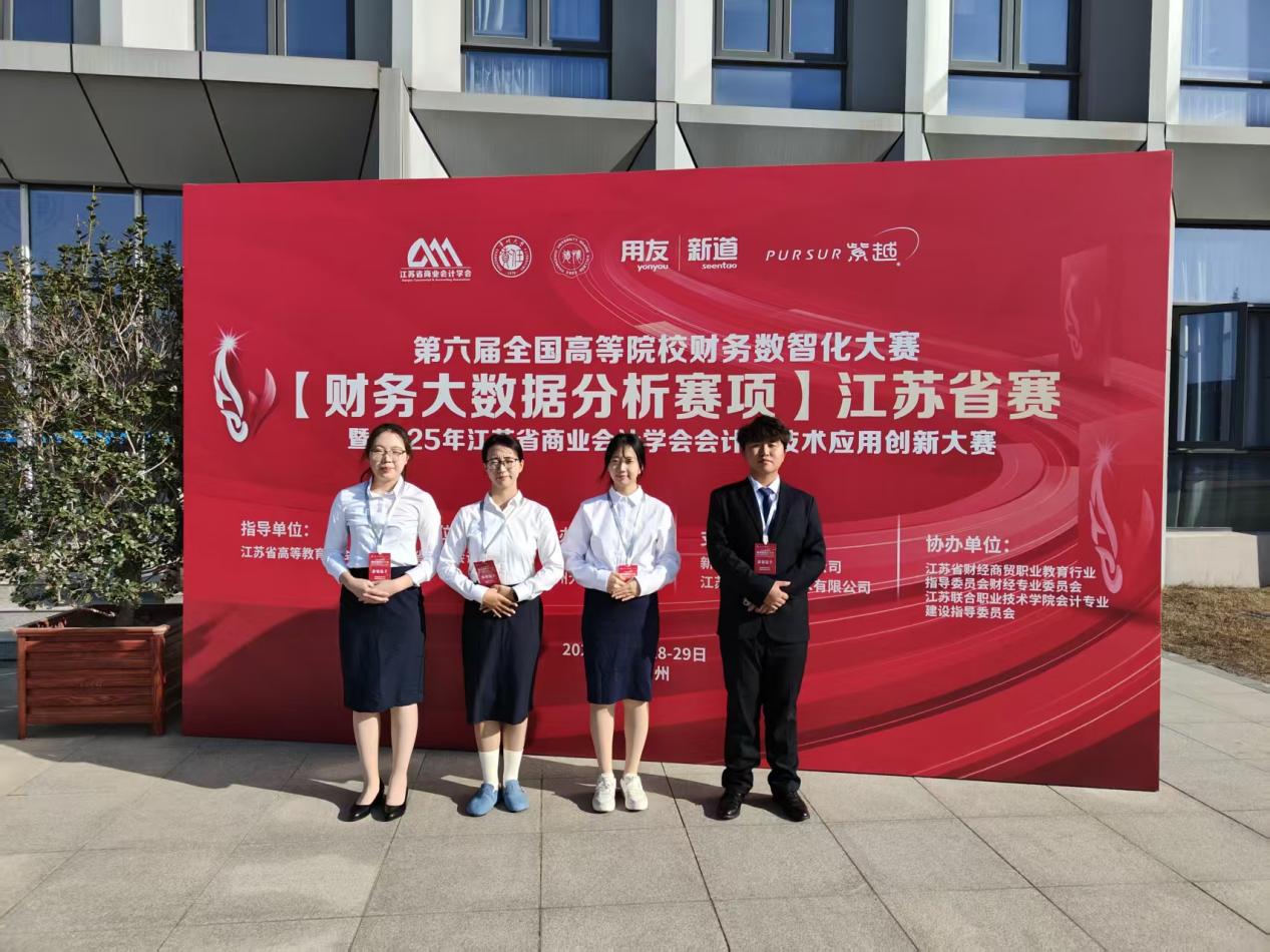 11月29日,第六届全国高等院校财务数字化大赛(财务大数据分析赛项)江苏省赛暨2025年江苏省商业会计学会会计新技术应用创新大赛在常州大学圆满落幕。本次大赛分设本科组与职业组两大组别独立竞赛、独立评奖,来自全省各高校的47支队伍同台竞技。我校经管学院大数据与会计专业戎春、王爽、张凯琳、孔鑫华四名同学组成的参赛团队,在职业组激烈角逐中凭借扎实的专业功底与娴熟的数智化技能脱颖而出,荣获大赛三等奖,充分展现了学校大数据与会计专业技术技能人才的培养成效。