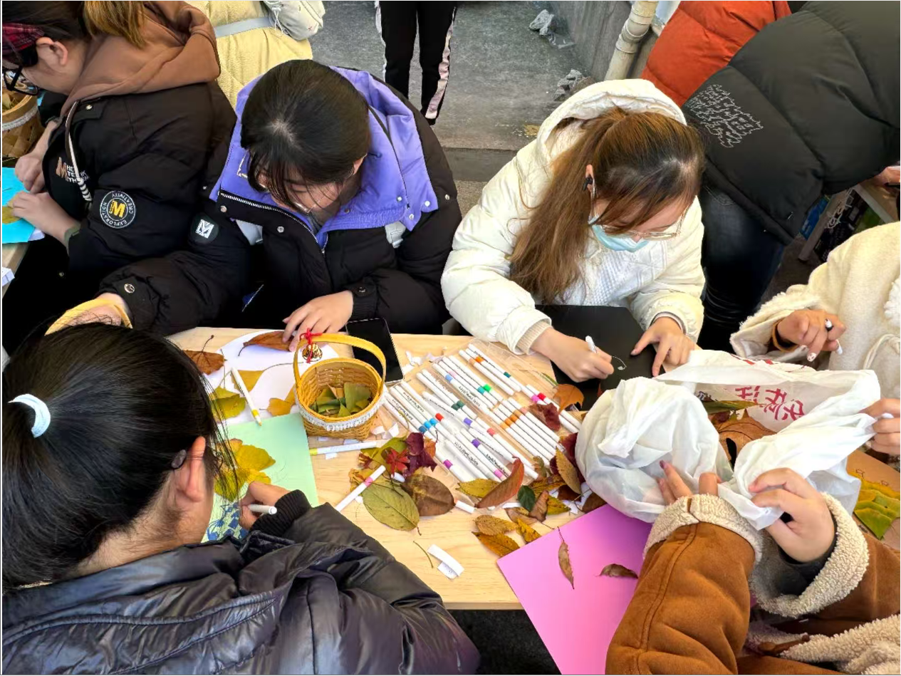 为进一步提升学生心理健康素养,营造温暖和谐的校园心理氛围,在“12·5”心理健康周期间,经管学院“叶染丹青——秋叶创意画”手工体验活动在弘毅广场开展。来自学院各年级的学生积极参与,在秋叶与创意的碰撞中释放压力,感受自然与艺术融合的治愈力量。
