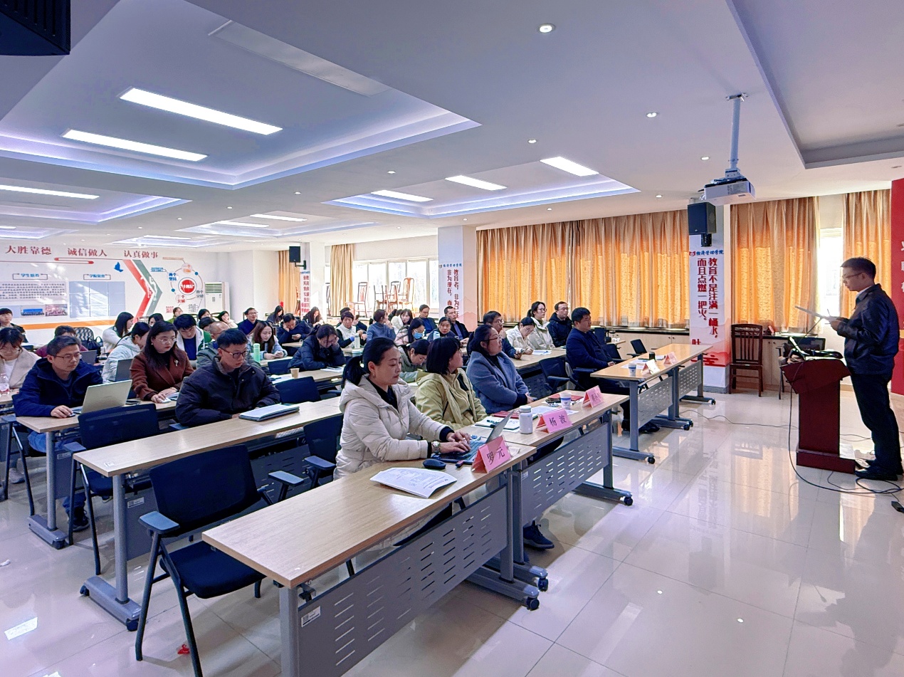 为积极响应人工智能时代对经管类人才培养的新要求,推动AI技术与专业教学深度融合,提升教师数字化教学能力与创新意识,12月3日下午经管学院在合一楼C301会议室成功举办了“2025年AI赋能专业特色发展教学示范活动”。学院领导、评审专家及全体教职工齐聚一堂,共同见证了一场充满创新与实践智慧的教学盛会。活动由经管学院副院长罗元主持。