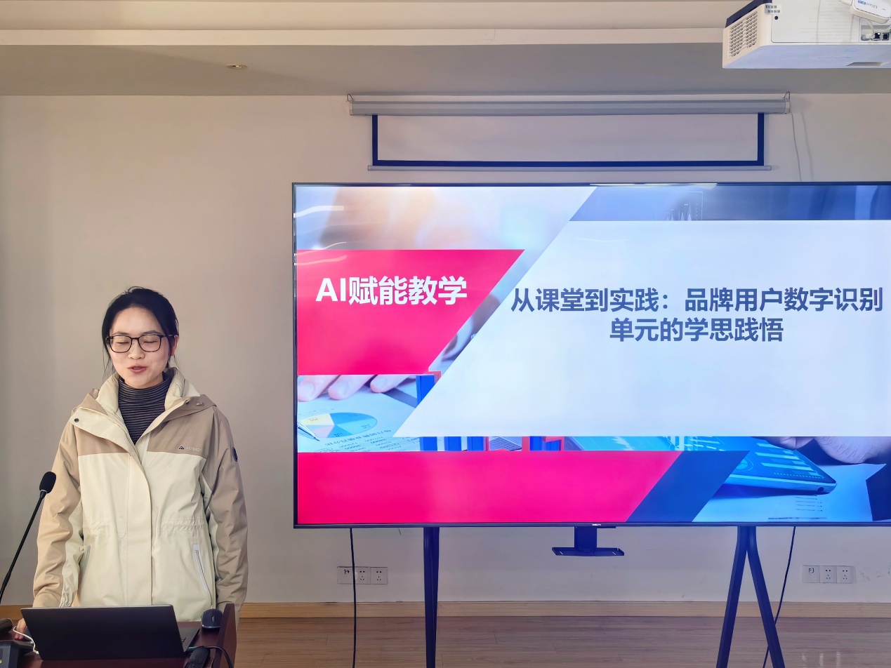 王磊、陈静娴老师(市场营销教研室联合展示)围绕《品牌用户数字识别单元的学思践悟》,呈现了从AI工具学习(如DeepSeek)、数据采集(八爪鱼)到用户聚类分析与营销策略制定的完整项目式教学过程,体现了“学—思—践—悟”一体化的设计理念。