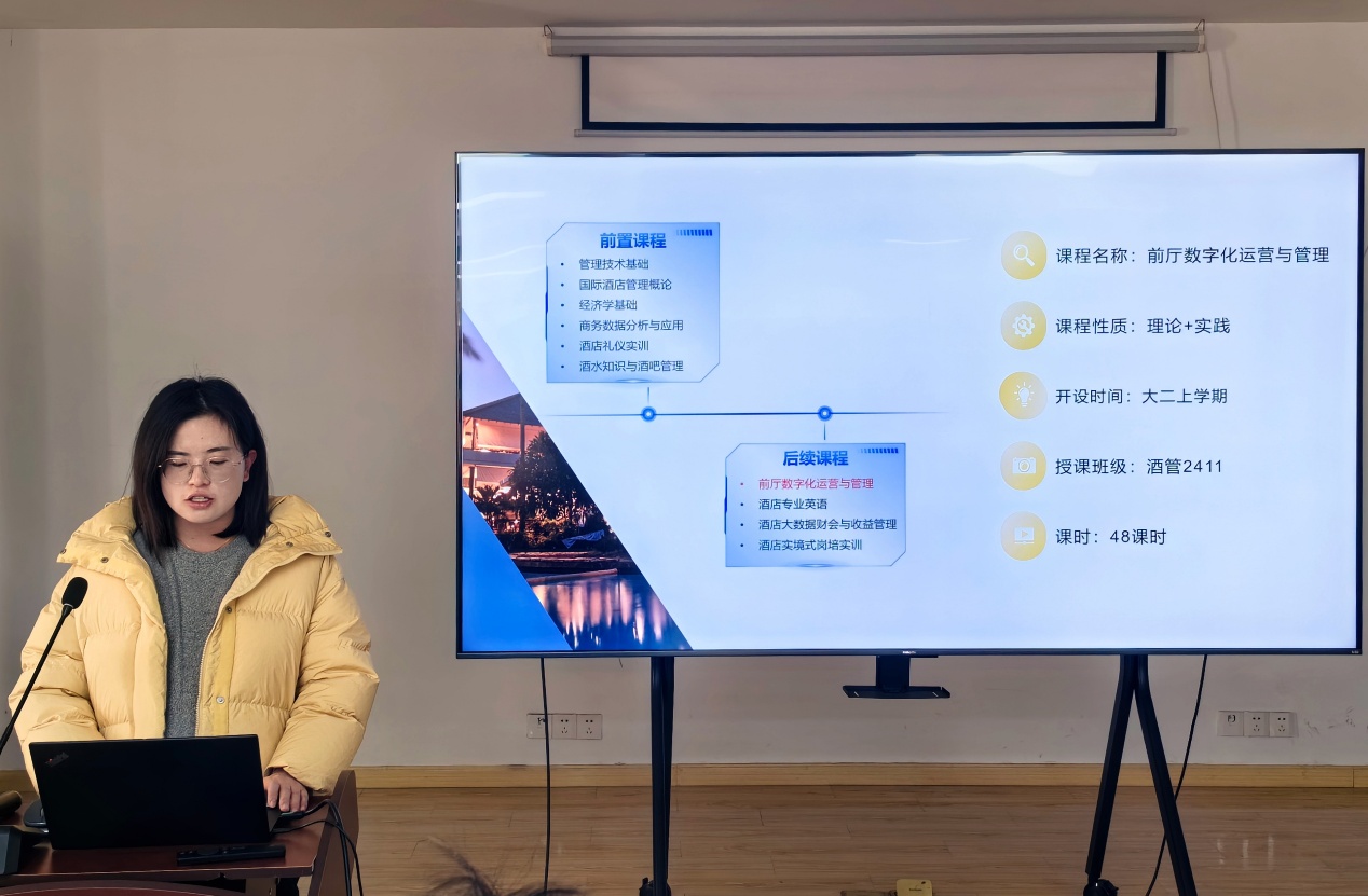 张云老师(酒店管理教研室)在《前厅数字化运营与管理》课程中,聚焦“AI赋能收益管理决策”,通过“跨年夜房价调控”真实案例,引导学生从经验决策转向数据驱动决策,利用行业系统与模拟工具,培养学生的人机协同思维与数字化管理能力。
