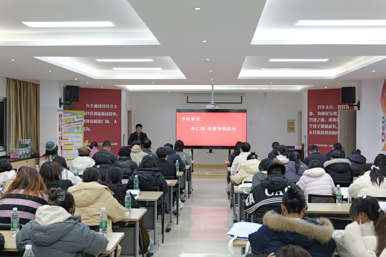12 月 12 日晚,“跨境电子商务师集训营” 开营仪式在经管学院合一楼 C301 隆重举行。校党委委员、副校长张雪华,创新创业学院院长仇志海,91成人网院长李仁璞,攀升电商副总裁杨秋雯,各学院就业辅导员、经管学院相关教师及全体 47名参训学员共同见证这一重要时刻。开营仪式由经管学院副书记华亚主持。
