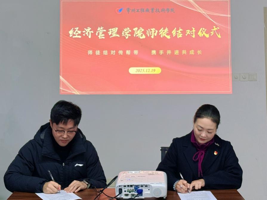 仪式上,市场营销专业带头人王磊、酒店管理与数字化运营专业带头人罗元受聘为指导教师,分别与新入职的陈静娴、沈铉林结为师徒。师徒双方郑重签订了《新老教师师徒结对协议书》。一纸协议,承载着一份承诺、一份责任,更承载着学院对教育教学薪火相传、匠心永续的殷切期望。